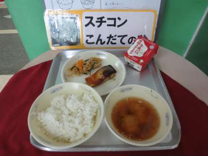 「さばのつけ焼き」は、さばをしょうが・しょう油・三温糖・みりん・料理酒を混ぜ合わせたタレにつけて、スチームコンベクションオーブンを使って焼きました。