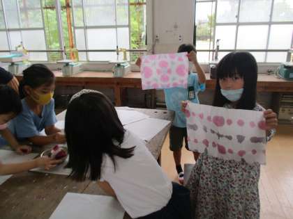 染めた和紙を使った「うちわづくり」も楽しみですね。