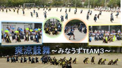 団体演技「爽涼鼓舞」では,キレのよい踊りを披露し,扇子の動きもよくそろっていてとてもきれいでした。