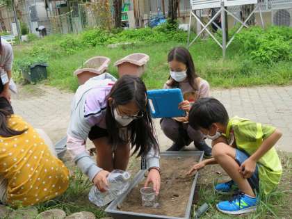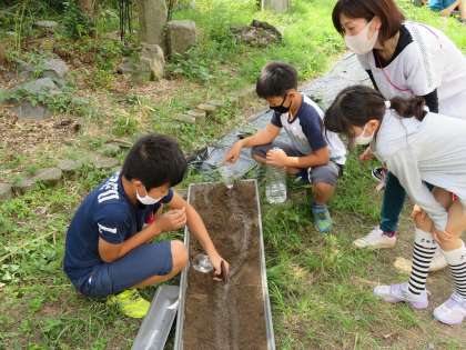 実験!流れる水のはたらき!