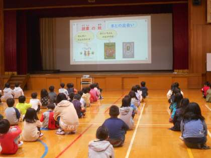 4年生は,2年生と6年生と共に校長先生のお話を聞きました。