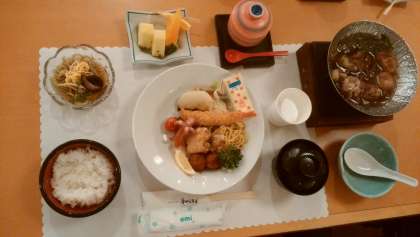 すき焼き,茶碗蒸し,エビフライ,からあげなど,豪華なメニューです。