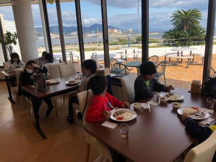 今日のお昼は,海の見えるレストランでカレーライスです。