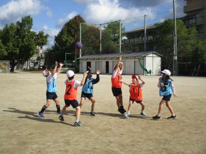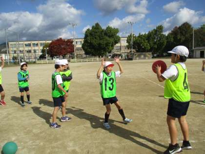 友達とパスをうまくつないで,シュートがゴールマンに渡れば,得点が入る