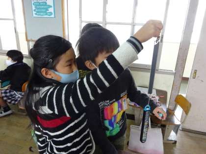 「給食袋はばねばかりがいいな。」