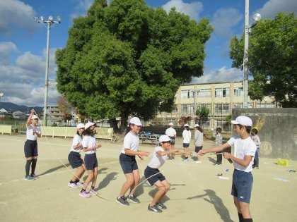 縄跳びは 短縄だけでなく 長縄4人跳び