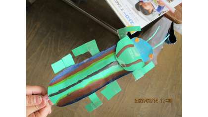 3,4時間目の図画工作科では,ストローで動く仕組みから想像したことの形や色をもとに,つくりたいもののイメージを広げて,動きを生かした楽しい作品をつくりました。「先生,虫の足が動いているみたい。」「鳥が羽をバタバタさせているみたい。」「人が手を挙げているみたい。」などそれぞれ自分の思いに合った楽しい動きを工夫しながらつくっていました。来週は,自分や友だちの作品を動かしながら鑑賞し,動きの楽しさや面白さやよさに気付いていきたいと思います。