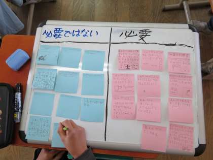 今日は友だちと意見を出し合いながら,自分の主張や予想される反論を付箋に書き出していきました。友だちと考えることで,話が盛り上がり意欲的な活動になりました。