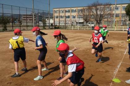 最初は後ろを振り返りながらしていたバトンパスでしたが,どんどん上達してきました。
