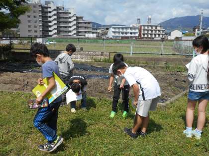 いよいよ4年生の理科の学習が始まりました。春の生物を見つけるために運動場に出て,春みつけをしました。草むらや花壇を観察しているとチューリップやたんぽぽといった花などを見つけることができました。