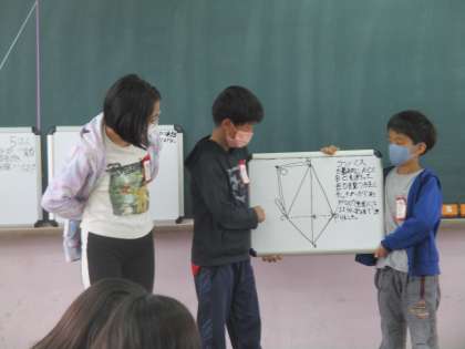 グループでどうすれば簡単にかけるのかを考え,説明をし合いました。