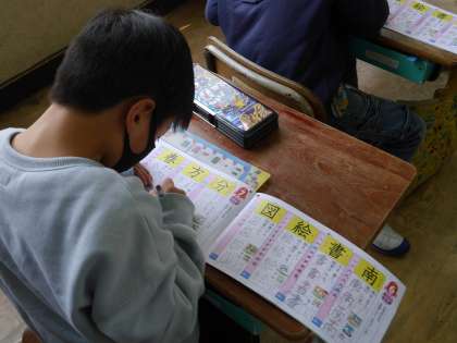 漢字ドリルを使って,漢字の学習をしています。2年生では1年生の頃より多くの漢字を習います。画数も多く難しい漢字も多いです。