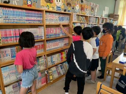 5年生で,図書のオリエンテーリングをしました。図書館司書の長谷先生にお話をしていただきました。本の分類や読書ノートについてお話を聞き,どれを読んでみようかなと,楽しそうに本を探していました。積極的に本を読み,楽しく本に触れていってほしいです。