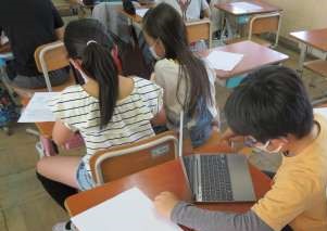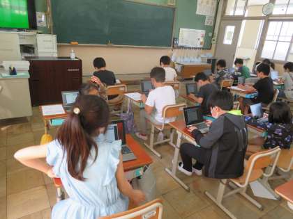 今回は,タブレット端末を使用し,キーボード入力練習をしました。まだまだ不慣れな様子ですが,キーボードを見ながら一生懸命にタイピングをしていました。2文字や3文字の単語を練習している子もいれば,昔話のような長文に挑戦している子もいました。少しずつキーボード入力に慣れてもらいたいです。
