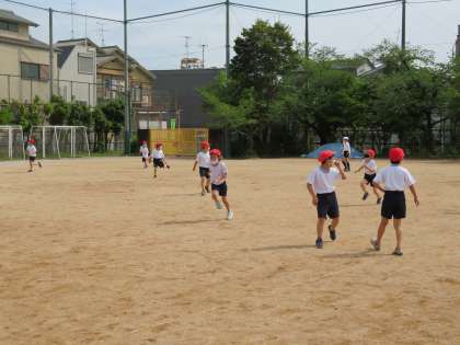 写真は,ウォーミングアップで「増え鬼」をしているところです。