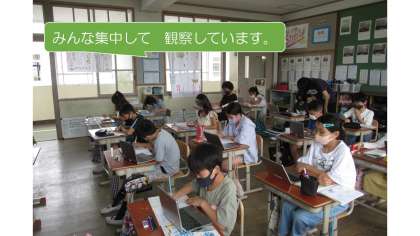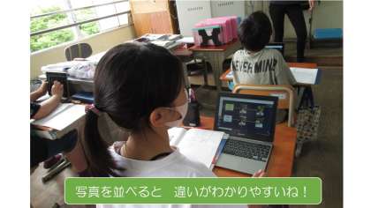 一週間でどれくらい成長したかタブレット上の写真を見て観察しました。