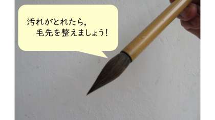 先日,習字の学習を行いました。そのため,大筆に墨が付いた状態になっています。