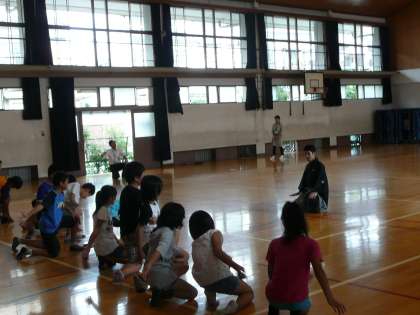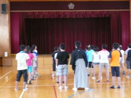 みんなと一緒に「狂言」を観賞したり、「狂言」の所作を体験しました。