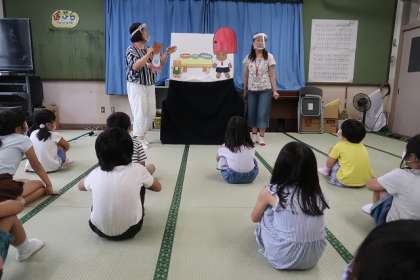 絵本を2冊読んでもらい,次の展開はどうなるんだろう?と,みんなわくわくしていました。