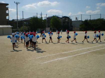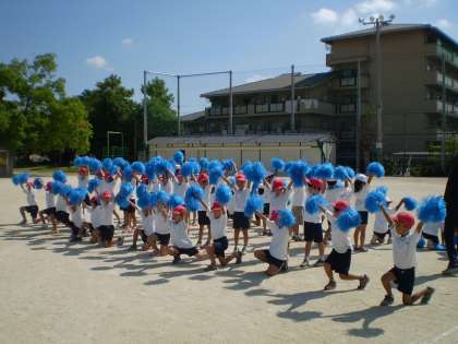 炎天下の中,2年生はダンスの練習を頑張っています。今日は入退場の仕方と,「ハグしちゃお」の最後のポーズの練習をしました。練習するたびに,ポーズがきまるようになってきました。