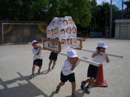 今日は、はじめておみこしをのせて練習しました。おみこしには、1年生の笑顔がたくさんはってあります。ぜひ当日、ご覧ください。