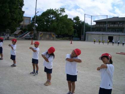 おみこしを運ぶ前に踊る踊りを、はじめて運動場で踊りました。まだ踊りを覚えていないので、少し不安そうでした。あと1週間でしっかり覚えてほしいと思います。