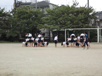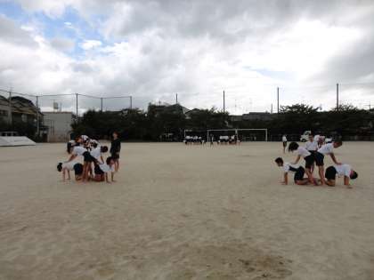 明日はついに小学校生活最後の運動会!組体操にも気合が入ります。体育館と違い,運動場は痛さも増し,服や手足につく砂が気になりますが,この日は今までで一番良い出来でした。明日は,練習の成果,それ以上の力を発揮してがんばると思います。応援よろしくお願いします。
