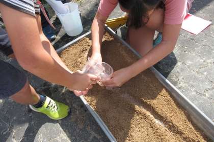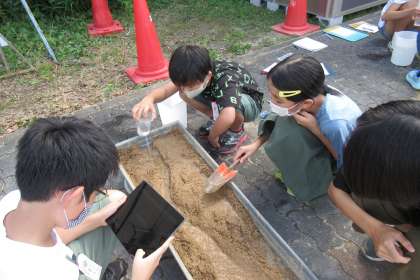 水が流れるとどのような変化が起こるか実験で確かめました。