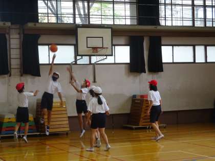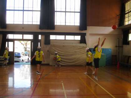 チームでパスやドリブル,シュートの練習をし,試合をします。