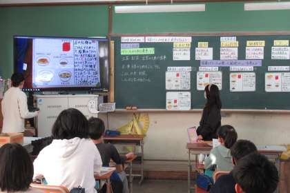 授業の最後には グループごとに給食の献立を考えて発表しました。