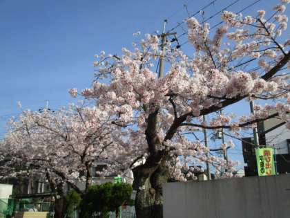 校門の桜は満開になり,花壇の花々も美しく咲いています。