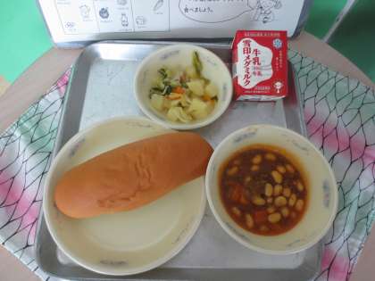 大人気の献立カレーでした。一年生もカレーもごはんもしっかりと食べることができました。ひじきのソテーの豆もやわらかくて美味しかったと言ってくれました。