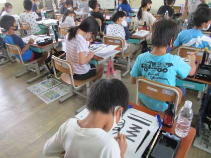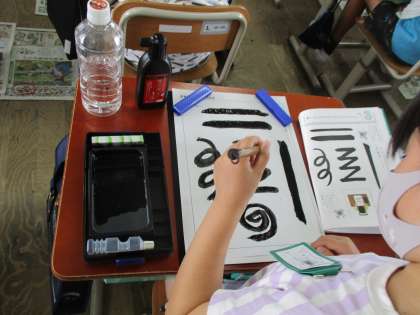3年生から始まった書写の学習。今日は,筆に墨をつけて書く練習をしました。いろいろな線をかきながら,筆の動かし方に少し慣れることができました。
