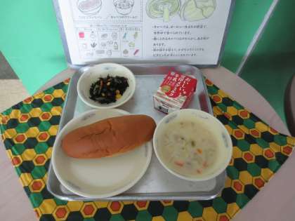 春にとれるキャベツはやわらかく、甘味があります。体の調子を整えて、かぜをひきにくくするビタミンCが多く含まれています。「キャベツのクリーム煮」に使われています。