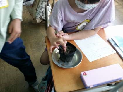 種を植え,水やりをしました。