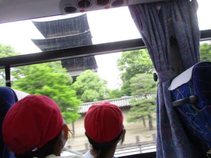 3年生にとって初めての社会見学。。バスに乗って京都市内をめぐりました。観光バスさながら,京都市の名所を通るたびに大興奮の子ども達。京都駅,将軍塚,三条商店街など,京都市内の各地を回りましたが,それぞれの場所で見たことや感じたことをしっかりとメモに取っていました。今日のことを思い出して,社会の学習に生かしてほしいと思います。