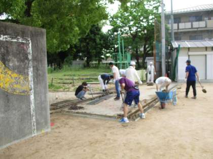 28日(土)にグラウンド清掃がありました。たくさんの地域の方が集まり,草かりや溝そうじなどきれいにしていただきました。すっきりした運動場で,気持ちよく,運動がさらに楽しめそうですね。