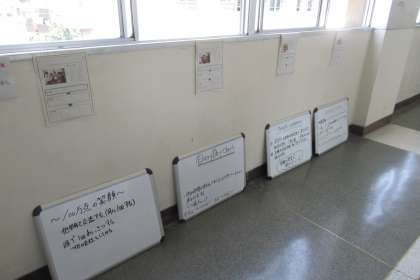 今の活動内容を 廊下に紹介しています。