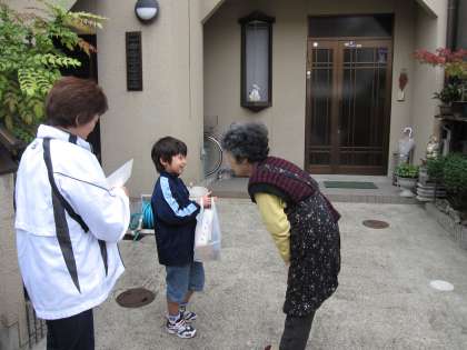 地域に住んでおられるおじいさん・おばあさんにビオラを配りに行きました。名前を言った後「大切に育ててください。」と大きな声で言うことができました。「ありがとうと言ってもらえてうれしかったよ。」「また花を配りたい。」と子どもたちは満足そうでした。