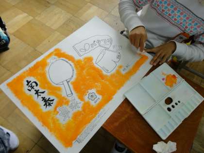 卒業アルバムの表紙づくりで,色つけをしています。様々な技法を使って取り組んでいます。