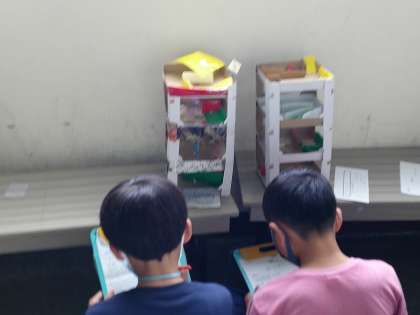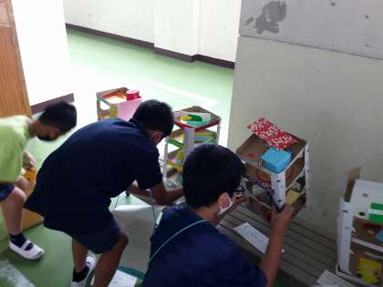 子どもたちは,友達の作品の仕組みに感心しながら,