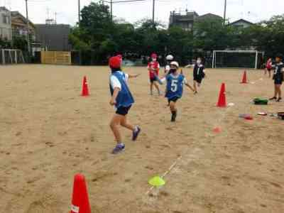 5年生は体育科でリレーの学習をしています。単元の前半はチームの走順を入れ替えながら作戦を考え。単元の後半は,走順を固定して,バトンパスの工夫を考えます。子どもたちから,「走り出すときに掛け声をする」「仲間を信じて前を向いてバトンをもらう」など,チーム内で工夫する様子が見られました。