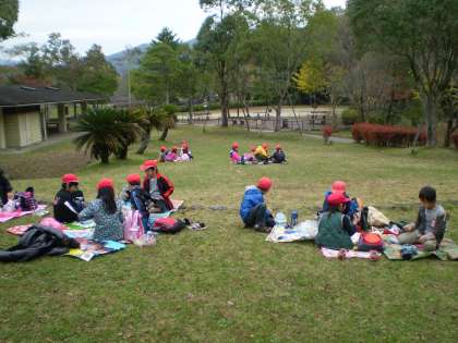 大きな広場で子どもたちは,思い切り遊びました。追いかけっこをしたり,寝転がったり,側転をしたり・・・とても楽しんでいました!美味しいお弁当も食べました。