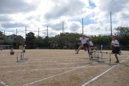 ハードル走 3歩のリズムで上手に跳ぶことができました。