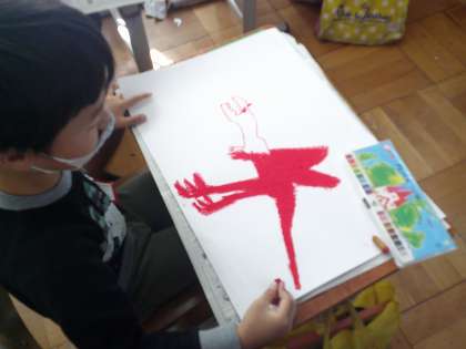 自分の乗ってみたい乗り物や生き物を想像して絵に