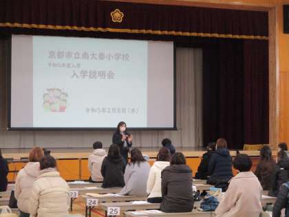 保護者の方には、体育館で、入学にあたって準備していただきたいことや大切にしていただきたいことなどをお伝えしました。入学式まであと2か月となりましたが、4月を楽しみに、お子様と一緒に準備していただけたらと思います。
