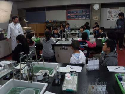次に,クラスごとに分かれて実験室で学習しました。