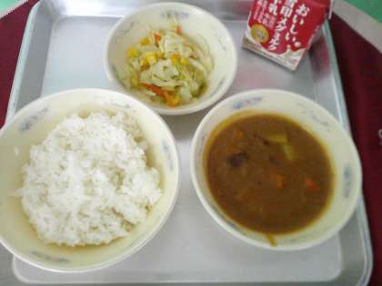 カレーは,人気の給食で,手作りのルーを味わって食べました。
