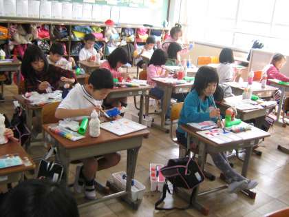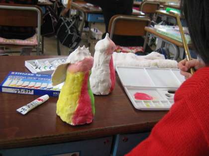 立体の物に色を塗るのは初めてなので苦戦している子もいましたが、みんなきれいに着物の色を塗ることができていました。