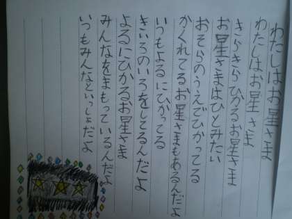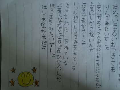 国語の時間に詩を書いています。えんぴつやテレビ,太陽やお星さま・・・子どもたちの身の回りにあるものになりきって書いています。最初は難しかったようですが,書けば書くほど上手になってきました。くり返し表現やリズミカルなもの,かわいらしいものや優しさあふれるもの,子どもたちのセンスが光っています。